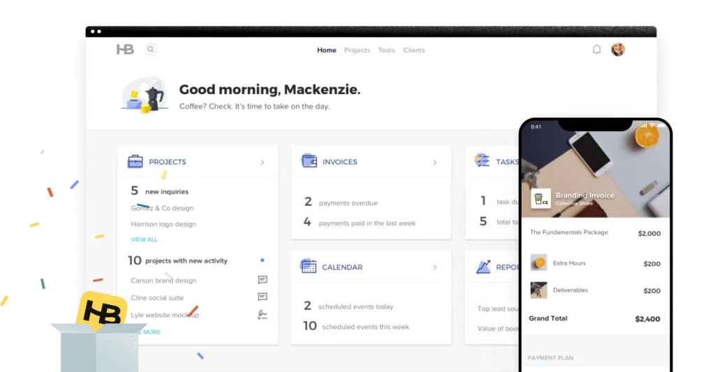- All-in-one platform for proposals, contracts, invoices, scheduling, and payments